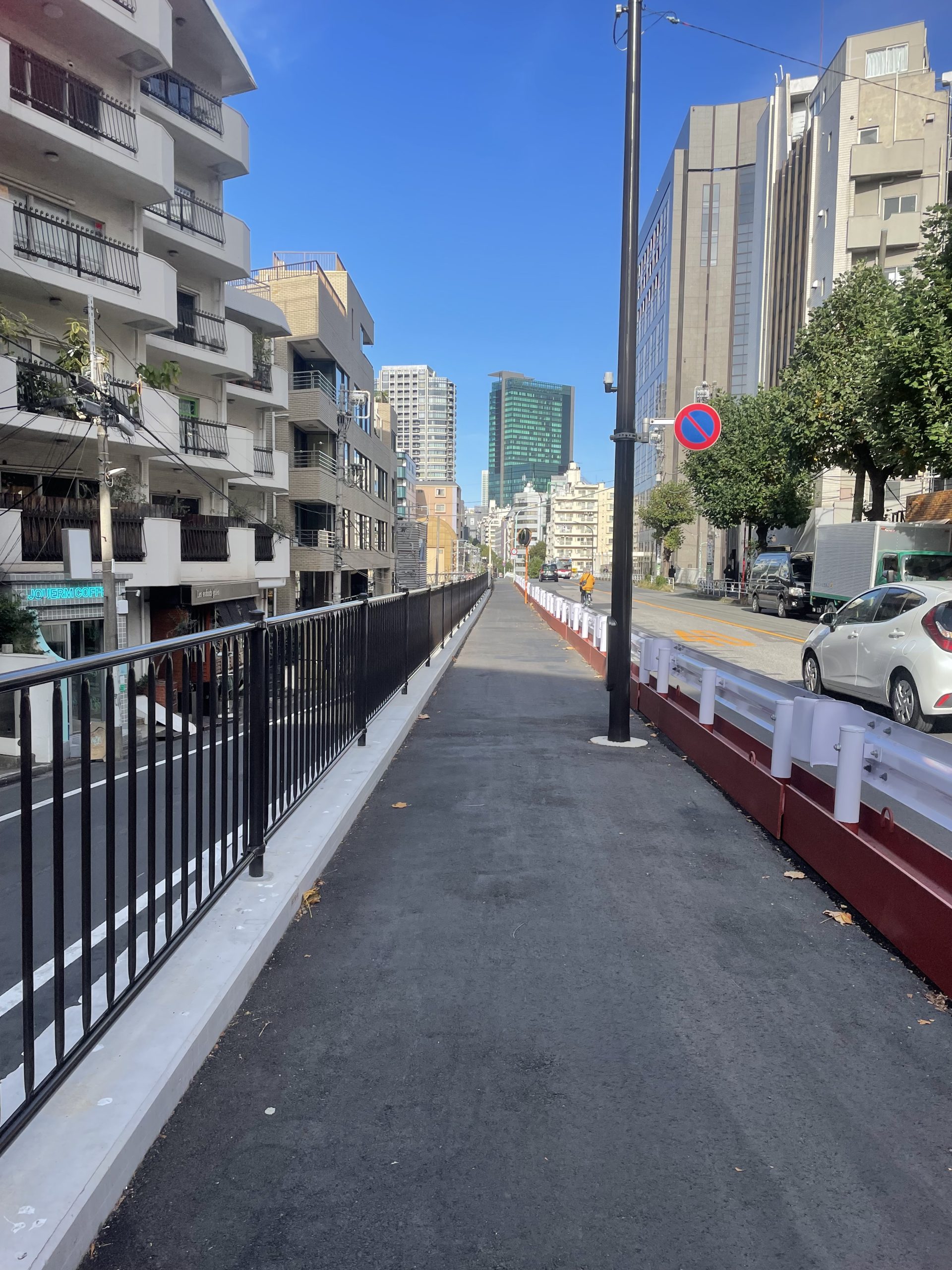 渋谷に向かう並木橋の歩道が